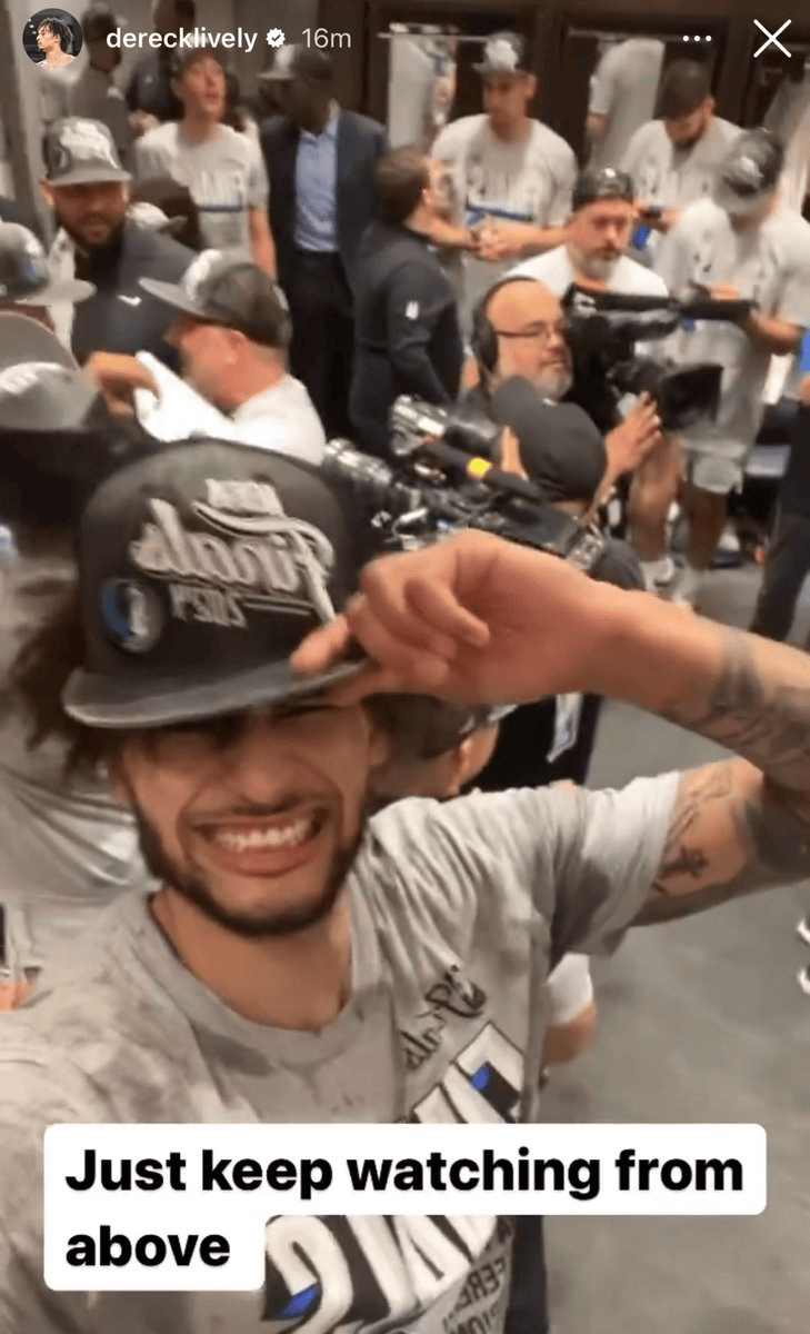 赛后独行侠中锋德雷克-莱夫利更新了社交媒体。媒妈妈继
